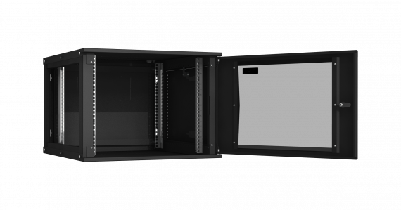 Настенный разборный шкаф TLK 19", 9U, стеклянная дверь, Ш600хВ436хГ600мм, 2 пары монтажных направляющих, черный