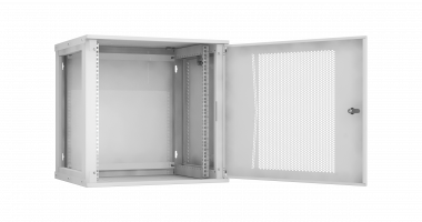 Настенные шкафы серии Lite (TWI) — это рациональное решение для размещения малых объемов телекоммуникационного оборудования, внутри жилых, офисных и производственных помещений. Настенные шкафы используют там, где применение напольных шкафов нецелесообразно. Например, при ограниченной площади помещения или при организации ЛВС с небольшим количеством рабочих мест. Особенностью настенных шкафов серии TWI является: надежная сборная конструкция, для удобства траспортировки, наличие съемных боковых стенок, двери с большим углом открытия позволяют при необходимости осуществлять доступ к оборудованию с трех сторон. Сборно-разборная конструкция шкафа, состоящая из малого набора конструктивных элементов обеспечивает надежный конструктив и простоту сборки. Крепление шкафа к стене осуществляется через монтажные отверстия в задней стенке шкафа. (Крепеж не входит в комплект поставки). Дверь шкафа снабжена замком и может быть выполнена из стального листа с перфорацией или со вставкой из тонированного в массе стекла. Имеется возможность навесить дверь с правой или с левой стороны. Угол открытия двери — 180 градусов. Для дополнительного удобства монтажа и обслуживания устанавливаемого оборудования, конструкцией предусмотрены легкосъемные боковые стенки, в закрытом положении фиксируются замками. Для установки оборудования стандарта 19", шкаф оснащен одной парой монтажных направляющих в комплекте с юнитовой наклейкой (шкаф глубиной 600 мм оснащается двумя парами монтажных направляющих). Глубину установки оборудования на монтажных направляющих внутри шкафа можно изменять с шагом 25 мм. Перфорация шкафа обеспечивает хорошую вентиляцию установленного оборудования. Возможна установка вентиляторного блока в крышу и основание шкафа, для этого предусмотрены выламываемые заглушки. В шкаф глубиной 350 мм устанавливаются вентиляторные блоки с 1-м вентилятором, а в шкаф глубиной 450 и 600 мм устанавливаются вентиляторные блоки с 2-я вентиляторами. Имеется по 1-му кабельному вводу в крыше и в основании шкафа, выполнены они в виде прямоугольных выламываемых заглушек 270х56 мм. Все токопроводящие части шкафа заземлены между собой. Антикоррозионное покрытие выполнено ударопрочной порошковой краской. Шкаф выполнен в системе несущих конструкций серии 482,6 мм ГОСТ 28601-90 (19-дюймовому стандарту IEC 297). Максимальная допустимая распределенная нагрузка на шкаф серии TWI составляет 40 кг. Степень защиты шкафа составляет IP 20. Шкаф поставляется в разобранном виде, в одной коробке.