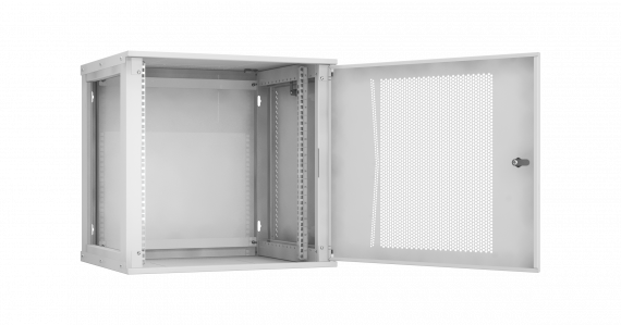 Настенный разборный шкаф TLK 19", 12U, перфорированная дверь, Ш600хВ569хГ450мм, 1 пара монтажных направляющих, серый