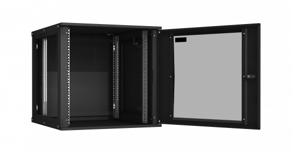 Настенный разборный шкаф TLK 19", 12U, стеклянная дверь, Ш600хВ569хГ600мм, 2 пары монтажных направляющих, черный