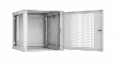 Настенные шкафы серии Lite (TWI) — это рациональное решение для размещения малых объемов телекоммуникационного оборудования, внутри жилых, офисных и производственных помещений. Настенные шкафы используют там, где применение напольных шкафов нецелесообразно. Например, при ограниченной площади помещения или при организации ЛВС с небольшим количеством рабочих мест. Особенностью настенных шкафов серии TWI является: надежная сборная конструкция, для удобства траспортировки, наличие съемных боковых стенок, двери с большим углом открытия позволяют при необходимости осуществлять доступ к оборудованию с трех сторон. Сборно-разборная конструкция шкафа, состоящая из малого набора конструктивных элементов обеспечивает надежный конструктив и простоту сборки. Крепление шкафа к стене осуществляется через монтажные отверстия в задней стенке шкафа. (Крепеж не входит в комплект поставки). Дверь шкафа снабжена замком и может быть выполнена из стального листа с перфорацией или со вставкой из тонированного в массе стекла. Имеется возможность навесить дверь с правой или с левой стороны. Угол открытия двери — 180 градусов. Для дополнительного удобства монтажа и обслуживания устанавливаемого оборудования, конструкцией предусмотрены легкосъемные боковые стенки, в закрытом положении фиксируются замками. Для установки оборудования стандарта 19", шкаф оснащен одной парой монтажных направляющих в комплекте с юнитовой наклейкой (шкаф глубиной 600 мм оснащается двумя парами монтажных направляющих). Глубину установки оборудования на монтажных направляющих внутри шкафа можно изменять с шагом 25 мм. Перфорация шкафа обеспечивает хорошую вентиляцию установленного оборудования. Возможна установка вентиляторного блока в крышу и основание шкафа, для этого предусмотрены выламываемые заглушки. В шкаф глубиной 350 мм устанавливаются вентиляторные блоки с 1-м вентилятором, а в шкаф глубиной 450 и 600 мм устанавливаются вентиляторные блоки с 2-я вентиляторами. Имеется по 1-му кабельному вводу в крыше и в основании шкафа, выполнены они в виде прямоугольных выламываемых заглушек 270х56 мм. Все токопроводящие части шкафа заземлены между собой. Антикоррозионное покрытие выполнено ударопрочной порошковой краской. Шкаф выполнен в системе несущих конструкций серии 482,6 мм ГОСТ 28601-90 (19-дюймовому стандарту IEC 297). Максимальная допустимая распределенная нагрузка на шкаф серии TWI составляет 40 кг. Степень защиты шкафа составляет IP 20. Шкаф поставляется в разобранном виде, в одной коробке.