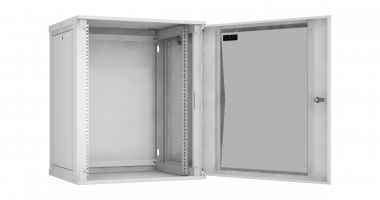 Настенные шкафы серии Lite (TWI) — это рациональное решение для размещения малых объемов телекоммуникационного оборудования, внутри жилых, офисных и производственных помещений. Настенные шкафы используют там, где применение напольных шкафов нецелесообразно. Например, при ограниченной площади помещения или при организации ЛВС с небольшим количеством рабочих мест. Особенностью настенных шкафов серии TWI является: надежная сборная конструкция, для удобства траспортировки, наличие съемных боковых стенок, двери с большим углом открытия позволяют при необходимости осуществлять доступ к оборудованию с трех сторон. Сборно-разборная конструкция шкафа, состоящая из малого набора конструктивных элементов обеспечивает надежный конструктив и простоту сборки. Крепление шкафа к стене осуществляется через монтажные отверстия в задней стенке шкафа. (Крепеж не входит в комплект поставки). Дверь шкафа снабжена замком и может быть выполнена из стального листа с перфорацией или со вставкой из тонированного в массе стекла. Имеется возможность навесить дверь с правой или с левой стороны. Угол открытия двери — 180 градусов. Для дополнительного удобства монтажа и обслуживания устанавливаемого оборудования, конструкцией предусмотрены легкосъемные боковые стенки, в закрытом положении фиксируются замками. Для установки оборудования стандарта 19", шкаф оснащен одной парой монтажных направляющих в комплекте с юнитовой наклейкой (шкаф глубиной 600 мм оснащается двумя парами монтажных направляющих). Глубину установки оборудования на монтажных направляющих внутри шкафа можно изменять с шагом 25 мм. Перфорация шкафа обеспечивает хорошую вентиляцию установленного оборудования. Возможна установка вентиляторного блока в крышу и основание шкафа, для этого предусмотрены выламываемые заглушки. В шкаф глубиной 350 мм устанавливаются вентиляторные блоки с 1-м вентилятором, а в шкаф глубиной 450 и 600 мм устанавливаются вентиляторные блоки с 2-я вентиляторами. Имеется по 1-му кабельному вводу в крыше и в основании шкафа, выполнены они в виде прямоугольных выламываемых заглушек 270х56 мм. Все токопроводящие части шкафа заземлены между собой. Антикоррозионное покрытие выполнено ударопрочной порошковой краской. Шкаф выполнен в системе несущих конструкций серии 482,6 мм ГОСТ 28601-90 (19-дюймовому стандарту IEC 297). Максимальная допустимая распределенная нагрузка на шкаф серии TWI составляет 40 кг. Степень защиты шкафа составляет IP 20. Шкаф поставляется в разобранном виде, в одной коробке.