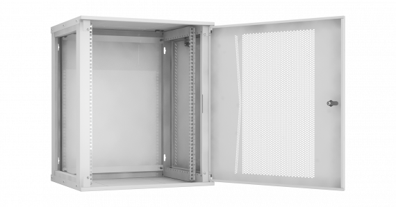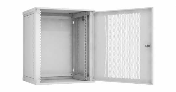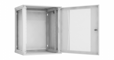 Настенные шкафы серии Lite (TWI) — это рациональное решение для размещения малых объемов телекоммуникационного оборудования, внутри жилых, офисных и производственных помещений. Настенные шкафы используют там, где применение напольных шкафов нецелесообразно. Например, при ограниченной площади помещения или при организации ЛВС с небольшим количеством рабочих мест. Особенностью настенных шкафов серии TWI является: надежная сборная конструкция, для удобства траспортировки, наличие съемных боковых стенок, двери с большим углом открытия позволяют при необходимости осуществлять доступ к оборудованию с трех сторон. Сборно-разборная конструкция шкафа, состоящая из малого набора конструктивных элементов обеспечивает надежный конструктив и простоту сборки. Крепление шкафа к стене осуществляется через монтажные отверстия в задней стенке шкафа. (Крепеж не входит в комплект поставки). Дверь шкафа снабжена замком и может быть выполнена из стального листа с перфорацией или со вставкой из тонированного в массе стекла. Имеется возможность навесить дверь с правой или с левой стороны. Угол открытия двери — 180 градусов. Для дополнительного удобства монтажа и обслуживания устанавливаемого оборудования, конструкцией предусмотрены легкосъемные боковые стенки, в закрытом положении фиксируются замками. Для установки оборудования стандарта 19", шкаф оснащен одной парой монтажных направляющих в комплекте с юнитовой наклейкой (шкаф глубиной 600 мм оснащается двумя парами монтажных направляющих). Глубину установки оборудования на монтажных направляющих внутри шкафа можно изменять с шагом 25 мм. Перфорация шкафа обеспечивает хорошую вентиляцию установленного оборудования. Возможна установка вентиляторного блока в крышу и основание шкафа, для этого предусмотрены выламываемые заглушки. В шкаф глубиной 350 мм устанавливаются вентиляторные блоки с 1-м вентилятором, а в шкаф глубиной 450 и 600 мм устанавливаются вентиляторные блоки с 2-я вентиляторами. Имеется по 1-му кабельному вводу в крыше и в основании шкафа, выполнены они в виде прямоугольных выламываемых заглушек 270х56 мм. Все токопроводящие части шкафа заземлены между собой. Антикоррозионное покрытие выполнено ударопрочной порошковой краской. Шкаф выполнен в системе несущих конструкций серии 482,6 мм ГОСТ 28601-90 (19-дюймовому стандарту IEC 297). Максимальная допустимая распределенная нагрузка на шкаф серии TWI составляет 40 кг. Степень защиты шкафа составляет IP 20. Шкаф поставляется в разобранном виде, в одной коробке.
