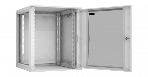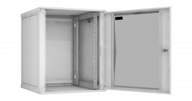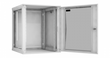 Настенные шкафы серии Lite (TWI) — это рациональное решение для размещения малых объемов телекоммуникационного оборудования, внутри жилых, офисных и производственных помещений. Настенные шкафы используют там, где применение напольных шкафов нецелесообразно. Например, при ограниченной площади помещения или при организации ЛВС с небольшим количеством рабочих мест. Особенностью настенных шкафов серии TWI является: надежная сборная конструкция, для удобства траспортировки, наличие съемных боковых стенок, двери с большим углом открытия позволяют при необходимости осуществлять доступ к оборудованию с трех сторон. Сборно-разборная конструкция шкафа, состоящая из малого набора конструктивных элементов обеспечивает надежный конструктив и простоту сборки. Крепление шкафа к стене осуществляется через монтажные отверстия в задней стенке шкафа. (Крепеж не входит в комплект поставки). Дверь шкафа снабжена замком и может быть выполнена из стального листа с перфорацией или со вставкой из тонированного в массе стекла. Имеется возможность навесить дверь с правой или с левой стороны. Угол открытия двери — 180 градусов. Для дополнительного удобства монтажа и обслуживания устанавливаемого оборудования, конструкцией предусмотрены легкосъемные боковые стенки, в закрытом положении фиксируются замками. Для установки оборудования стандарта 19", шкаф оснащен одной парой монтажных направляющих в комплекте с юнитовой наклейкой (шкаф глубиной 600 мм оснащается двумя парами монтажных направляющих). Глубину установки оборудования на монтажных направляющих внутри шкафа можно изменять с шагом 25 мм. Перфорация шкафа обеспечивает хорошую вентиляцию установленного оборудования. Возможна установка вентиляторного блока в крышу и основание шкафа, для этого предусмотрены выламываемые заглушки. В шкаф глубиной 350 мм устанавливаются вентиляторные блоки с 1-м вентилятором, а в шкаф глубиной 450 и 600 мм устанавливаются вентиляторные блоки с 2-я вентиляторами. Имеется по 1-му кабельному вводу в крыше и в основании шкафа, выполнены они в виде прямоугольных выламываемых заглушек 270х56 мм. Все токопроводящие части шкафа заземлены между собой. Антикоррозионное покрытие выполнено ударопрочной порошковой краской. Шкаф выполнен в системе несущих конструкций серии 482,6 мм ГОСТ 28601-90 (19-дюймовому стандарту IEC 297). Максимальная допустимая распределенная нагрузка на шкаф серии TWI составляет 40 кг. Степень защиты шкафа составляет IP 20. Шкаф поставляется в разобранном виде, в одной коробке.