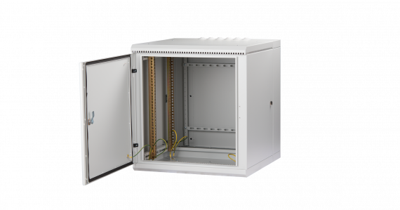 Настенные промышленные двухсекционные шкафы серии Indystry (TWM) — это защищенное решение для размещения малых объемов телекоммуникационного оборудования, в помещениях с повышенной запыленностью, влажностью, в местах возможного воздействия агрессивных сред, риска механического повреждения, а также в условиях повышенной вибро- и сейсмоактивности, и требуется частое обслуживание оборудования. Настенные шкафы используют там, где применение напольных шкафов нецелесообразно. Основной особенностью шкафов серии TWM является, наличие фальш-крыши, поворотной секции, системы уплотнительных контуров, наличие фильтрующих элементов - все это предоставляет расширенные возможности для эксплуатации и защиты оборудования. Шкаф представляет собой металлическую конструкцию, состоящую из неподвижной и поворотной секции, двери и съемной фальш-крыши. Поворотная секция дает возможность доступа к тыловой части устанавливаемого оборудования. Наличие фальш-крыши, уплотнительных контуров у неподвижной и поворотной секций и двери, вентиляционных проемов с фильтрующим элементом, а также гермовводов обеспечивают класс защиты шкафа IP55. Наличие замка в двери и основной секции предотвращают несанкционированный доступ к оборудованию. Для монтажа различного оборудования, внутри шкафа располагаются две пары монтажных направляющих 19”, регулируемых по глубине. Для установки монтажных панелей, DIN-реек, а также электросилового оборудования неподвижная секция шкафа оснащена стационарными планками. Ввод и вывод кабеля осуществляется через отверстия герметизированных вводов в верхней и нижней сторонах неподвижной секции шкафа. Система вентиляции состоит из двух вентиляционных проемов, оснащенных сменными фильтрами. Проемы расположены в потолке и основании поворотной секции. Принудительная вентиляция установленного оборудования, возможна установкой вентиляторного блока на 2 вентилятора с фильтрами в потолочный вентиляционный проем. Все токопроводящие части шкафа заземлены между собой. При подключении внутреннего контура к внешней шине заземления, шкаф может служить экранирующим контейнером, снижающим электромагнитные наводки на оборудование. Антикоррозионное покрытие выполнено ударопрочной порошковой краской. Крепление шкафа к стене осуществляется через монтажные отверстия в неподвижной секции. Шкаф выполнен в системе несущих конструкций серии 482,6 мм ГОСТ 28601-90 (19-дюймовому стандарту IEC 297). Максимальная допустимая распределенная нагрузка на шкаф серии TWM составляет 75 кг. Степень защиты шкафа по ГОСТ 14254-96 (МЭК 529-89) составляет IP55. Шкаф поставляется в собранном виде.